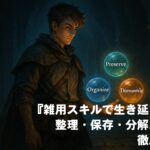 リストラ社会人がEランク探索者として再起をかける――カクヨム連載『雑用スキルで生き延びる』のスキル徹底考察!地味で最弱の「整理」「保存」「分解」が、やがて世界を変える戦略へと進化する。そのロジックを深掘り分析!